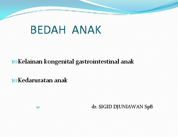 BEDAH ANAK Kelainan kongenital gastrointestinal anak Kedaruratan anak dr. SIGID DJUNIAWAN Sp. B
