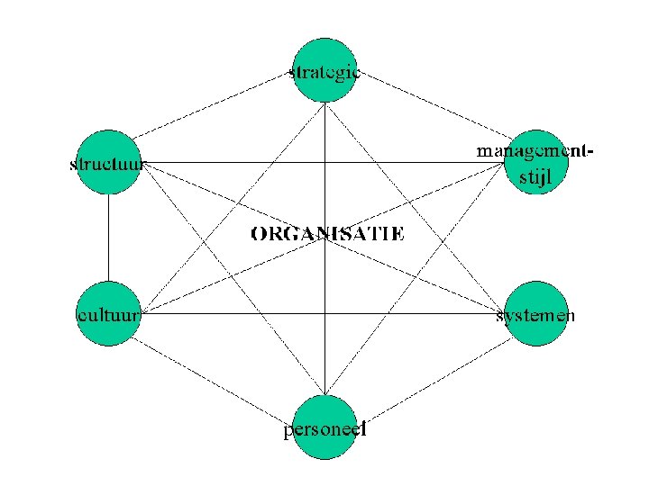 Mintzberg: situationeel Contingentie variabelen • Leeftijd • Techniek • Omgeving • Macht • Cultuur • Differentiatie en schaalgrootte • Formalisering, bureaucratisering en decentralisatie • Dynamiek, complexiteit, bedreigingen • Interne en externe controle • Cultuur van een land