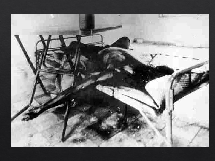 Dehumanization Worked 18 hour days (like an animal) “What is rotten must be removed” Whether you live or die is of no great significance” Forced Muslims to eat pork Fed a diet of 180 g of rice / 2 days