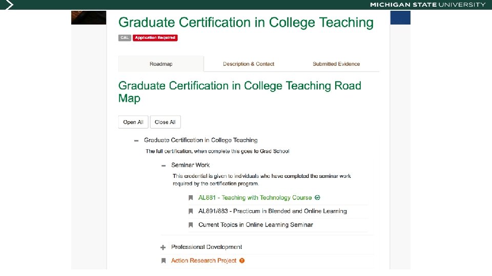 Overall Structure of Program § Develop competencies § Determine pathways of experience § Track/approve artifacts § Issue Credentials