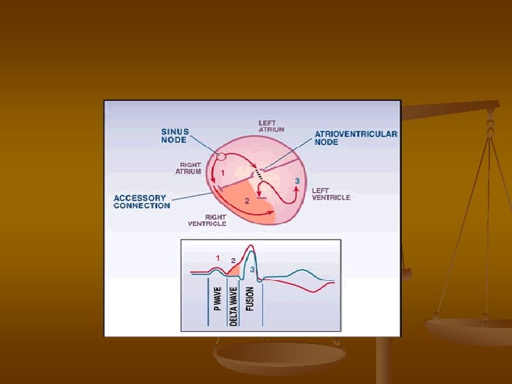 PR Interval n n measured from beginning of P to beginning of QRS in the frontal plane) Normal: 0. 12 - 0. 20 s Short PR: < 0. 12 s Preexcitation syndromes: WPW (Wolff-Parkinson-White) Syndrome: An accessory pathway (called the "Kent" bundle) connects the right atrium to the right ventricle (see diagram below) or the left atrium to the left ventricle, and this permits early activation of the ventricles (delta wave) and a short PR interval