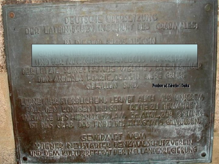 • Petar Šubić Zrinski i Fran Krsto Frankopan, te F. Nadasdy i E. Tatenbach 30. travnja 1671. bili su osuđeni i pogubljeni, na zgražanje i zaprepaštenje hrvatske i ugarske javnosti, te čitave Europe. God. 1907. » Braća hrvatskog zmaja « pronašli su kosti hrvatskih mučenika, a god. 1919. hrvatski rodoljubi su njihove ostatke prenijeli i sahranili u zagrebačku katedralu. Na njihovom grobu uklesana je poznata izreka kneza i pjesnika Frana Krste Frankopana: » Navik on živi ki zgine pošteno «.