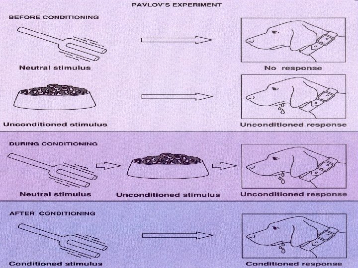v Consideration #1: How much time passes between the conditioned stimulus (neutral) and the unconditioned stimulus (automatic). This will usually be a matter of seconds. The shorter the time lapse, the more likely the organism is to associate the conditioned stimulus with the unconditioned stimulus. If too much time passes, the association will never be made – conditioning will not take place. v Consideration #2: The number of times the conditioned stimulus (neutral) and the unconditioned stimulus (automatic) must be paired for the association to be made, and for a conditioned response to occur. v What Determines Whether & How a Conditioned Response is Learned? ? ? TIMING - PREDICTABILITY - SIGNAL STRENGTH - ATTENTION Immediate - Consistent - Severe - Attentive Inconsistent (slow Acquisition/Extinction)