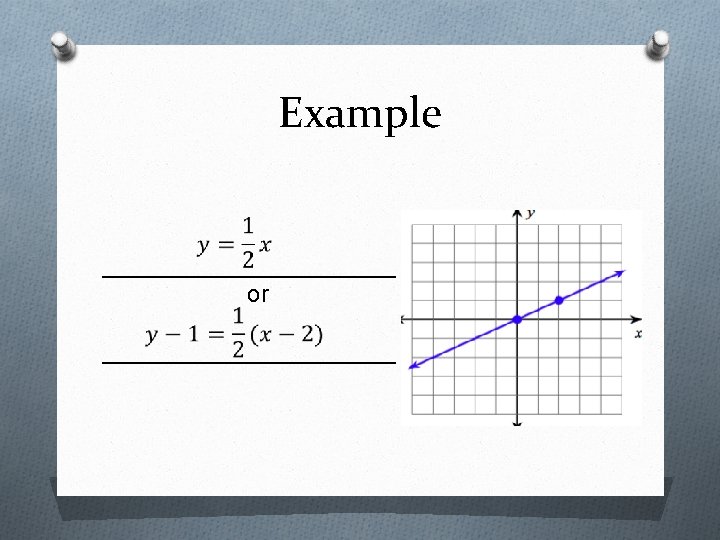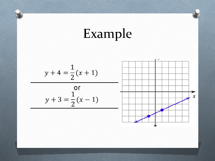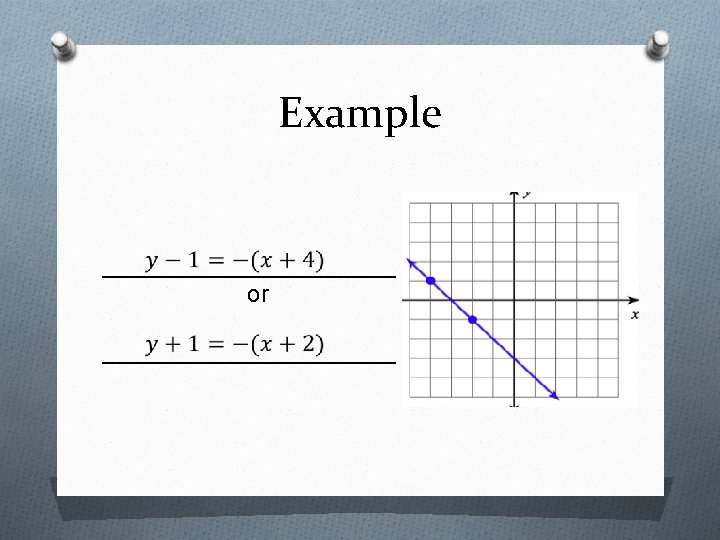 Point Slope form O _________ where m=_____ Slope and x 1 and y 1 Coordinates for a point on the line are_______________. O Example: Write an equation in Point slope form for the following