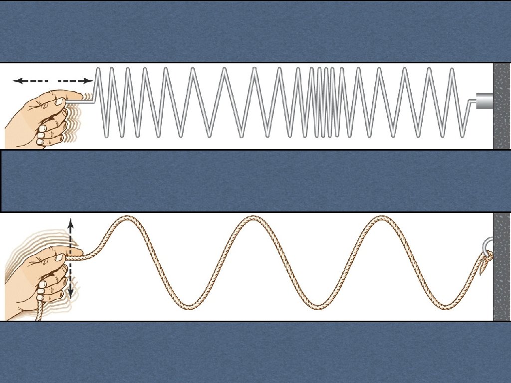 Types of Mechanical Waves • Transverse waves move the medium up and down. A wave in a rope is a transverse wave. • Longitudinal waves move the medium back and forth. A wave in a spring toy (Slinky) is a longitudinal wave.