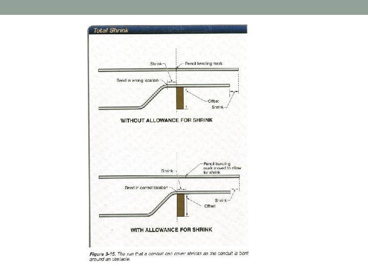 Shrink • When a conduit is bent around an obstacle, it “shrinks” in length • Shrink = the amount by which the total run that conduit can cover is reduced because of the extra length required to bend around an obstacle