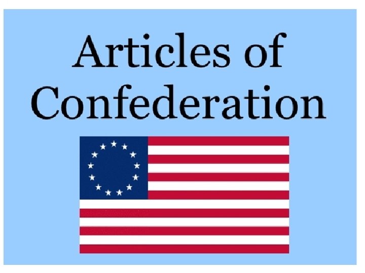We won the war, what do we do now? D) State asked Congress (national gov’t) to send troops to help E) Congress had no army to send 1. Articles of Confederation (written law) didn’t allow national gov’t to get soldiers