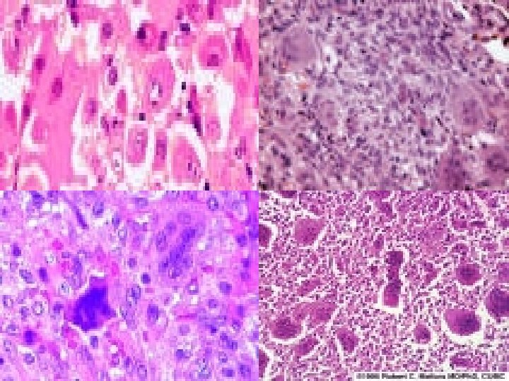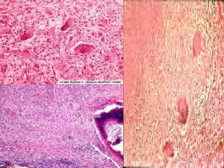 H/P ROUND TO OVAL OR SPINDLE SHAPED CELLS NUCLEUS SURROUNDED BY ILL DEFINED CYTOPLASMIC ZONE DISCERNIBLE INTERCELLULAR SUBSTANCE MITOTIC FIGURES GIANT CELL – 40 – 60 NUCLEI SCATTERED UNIFORMLY