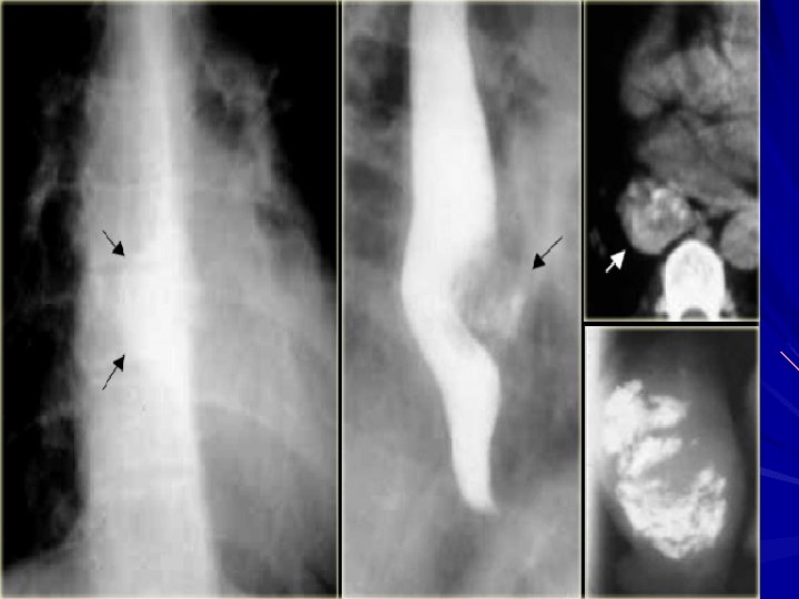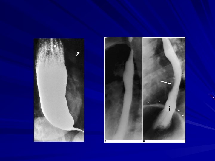 Diagnosis Findings can include : – dilated esophagus with retained food or secretions – normal in as many as 44% of patients with achalasia Difficulty traversing the GEJ should raise suspicion for pseudoachalasia due to neoplastic infiltration of the distal esophagus
