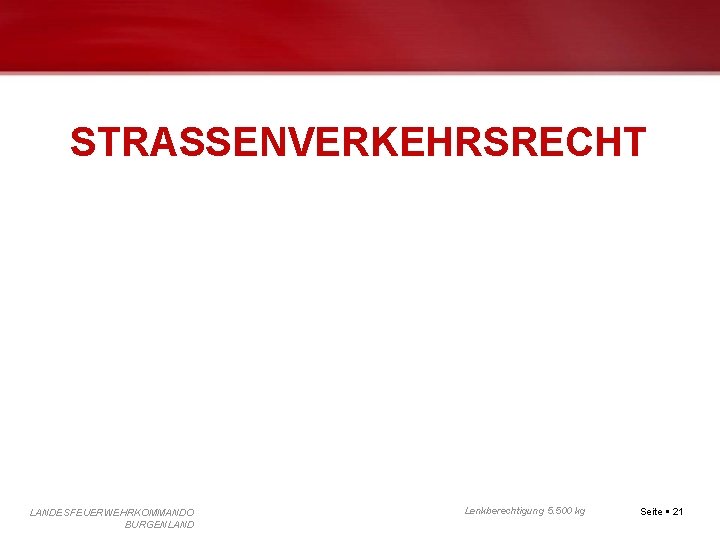 STRASSENVERKEHRSRECHT LANDESFEUERWEHRKOMMANDO BURGENLAND Lenkberechtigung 5. 500 kg Seite 21