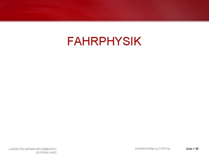 FAHRPHYSIK LANDESFEUERWEHRKOMMANDO BURGENLAND Lenkberechtigung 5. 500 kg Seite 36