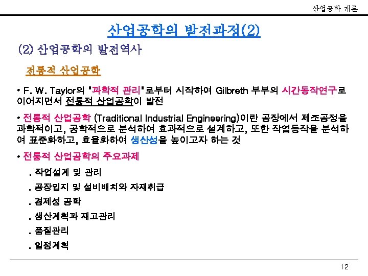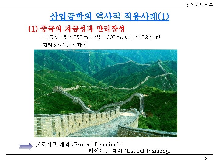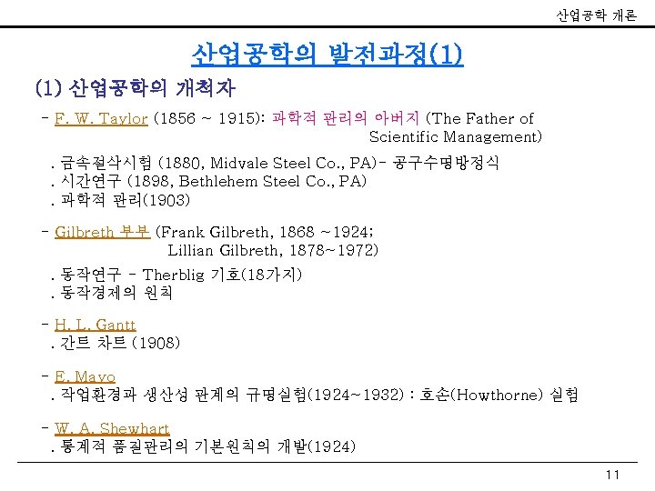 산업공학 개론 Historical Perspective of Industrial Engineering The first Industrial Engineering Department in the world: Pennsylvania State University in 1908 (www. ie. psu. edu) * 부산대학교 산업공학과 : 1985 년 설립 7