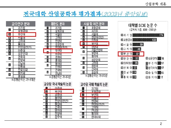 산업공학 개론 산업공학 교육의 방향(1) Enterprise Integration Collaborative Manufacturing/ E-manufacturing Information Technology Service Industry /Public Sector Application • Manufacturing System • Manufacturing Information System • Business Process Modeling & Workflow System • Manufacturing Innovation & Management Innovation Methodology • Product/Engineering Information Management • Planning& Control System • ERP & Enterprise Information System * Source: IE Magazine 2003. 8 27