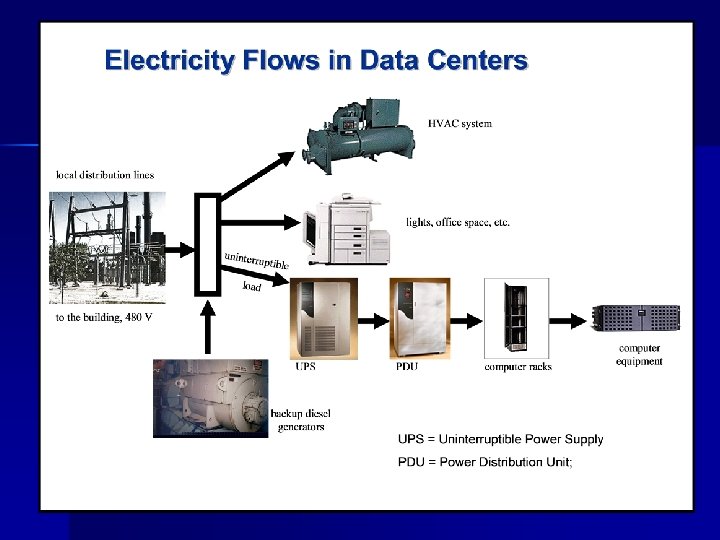 The Data Center Challenge Data Centers 15 -40 x the energy intensity of typical office buildings n A single rack of servers can be 20 k. W n – $17 k per year (at $. 10) per rack – Hundreds of racks per center n Where are the opportunities? – 22 data centers benchmarked