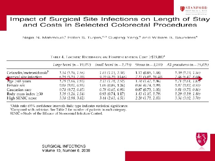 Impact of SSI n Year 2008: SSIs generate an average of $28, 211 in extra costs per case and comprise 38% of all morbidities. (ACS NSQIP, Business case, 2008) n SSI’s add an additional 7 -9 excess hospital days per case. (Infection Control Today, 2002)