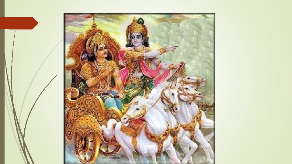 Bhagavad Gita In the epic Mahabharata a conflict between the Pandavas and their cousins Kauravas results in the Kurukshetra war. Pandavas (five brothers): Yuddhishtira, Bhima, Arjuna, Nakula & Sahadeva Kauravas (100 brothers): Oldest two – Duryodana and Dushyasana In the war, Lord Krishna helps the righteous Pandavas – he does not fight but, serves as Arjuna’s charioteer. Krishna is a cousin to both Pandavas and Kauravas. During the war, Arjuna, skilled archer puts his bow and arrow down and expresses his inability to carry on with the war.