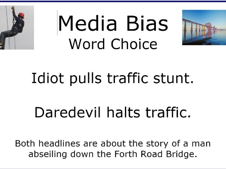 Bias in writing • Can you think of any types of text that are biased? • What about the media? E. g. news reports? • What about persuasive writing? • We can recognise bias in writing by the following: Emotional responses Exaggerations Stereotypical comments Opinions stated as facts One sided views No consideration for other side Missing information Positive/negative word choices