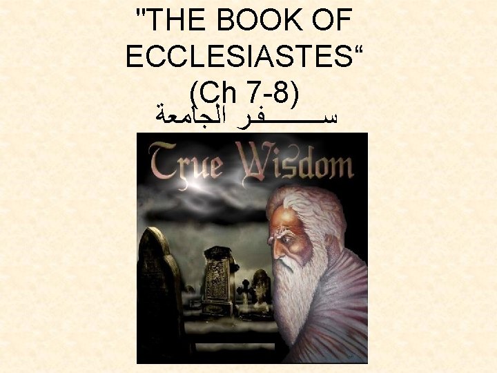 Chapter Seven & Eight Wisdom of dealing with the vain life and Preparing for Eternal life 1 - A good name is better than a good ointment, And the day of one’s death is better than the day of one's birth. (Ecclesiastes 7: 1). . ﺍﻟﻮﻻﺩﺓ ﻳﻮﻡ ﻣﻦ ﺧﻴﺮ ﺍﻟﻤﻤﺎﺕ ﻭﻳﻮﻡ ﺍﻟﻄﺏ ﺍﻟﺪﻫﻦ ﻣﻦ ﺧﻴﺮ ﺍﻟﺼﻴﺖ A good name = A good deed . . . day of death is better than the day of birth. At the day of your birth, anything is possible. But on the day of your death, what you have done with your life no longer can be changed.