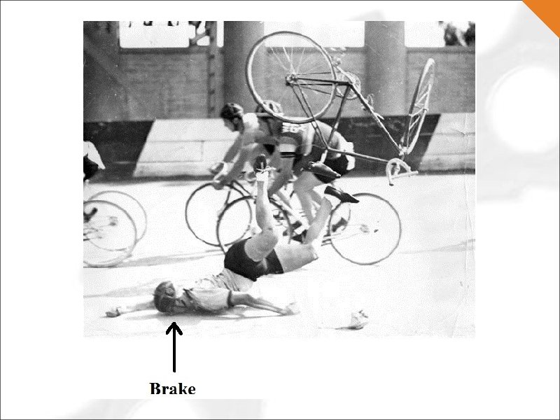 Tips Front Brake: 95% of braking power Rear Brake: Use on slippery surfaces and when turning Cornering: Use both brakes Emergency Braking Mostly front brake! Lean back!