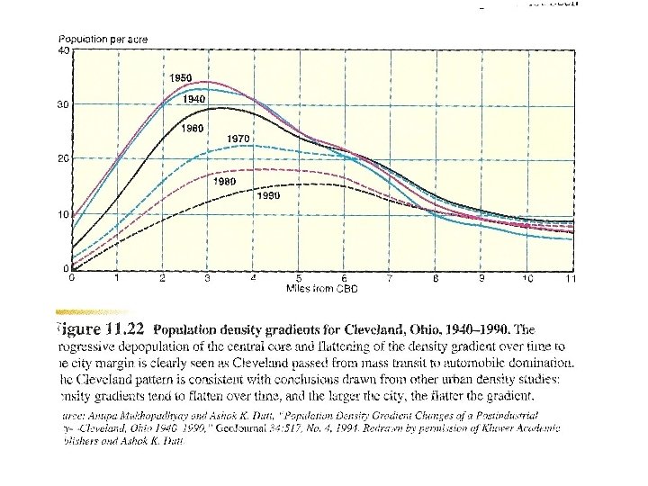 Bid-Rent Theory • The price and demand for real estate changes as the distance from the CBD increases • Price of land closer to CBD is higher • Different land uses will compete for desirable pieces of property in order to maximize profits • Accessibility increases the potential for more customers • Trade-off between accessibility and cost of land • Where have we seen a similar idea before? • How does this relate to Concentric Zone Model?