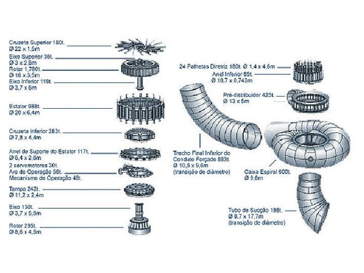 Generator Quantity Frequency Rated power Rated voltage (k. V) Number of poles Moment of inertia - GD 2 (t. m²) Power factor Heaviest component - rotor (t) Weight of each unit 50 / 60 Hz (t) 18 60 Hz (9 un. ) / 50 Hz (9 un. ) 50 / 60 Hz (MVA) 823, 6 / 737, 0 18 50 / 60 Hz 66 / 78 320. 000 50 / 60 Hz 0, 85 / 0, 95 1. 760 3. 343 / 3. 242