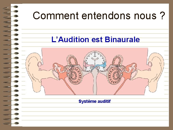 Comment entendons nous ? L’Audition est Binaurale Système auditif