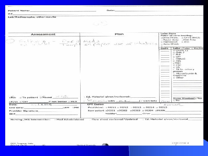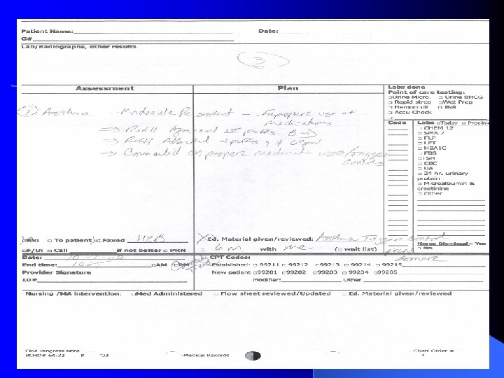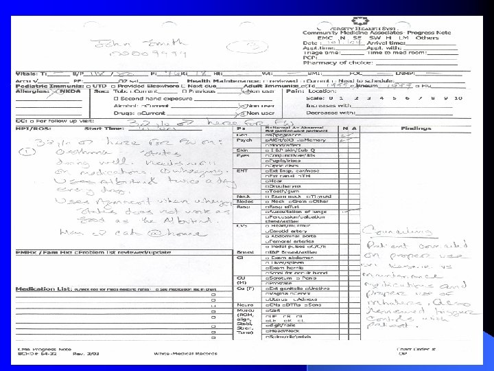 Health Maintenance Visits and Prevention Codes l Age and gender specific risk reduction education, cancer screening, immunization, etc. – USPSTF l Template driven notes helpful l Not all payers pay for prevention codes – Medicare pays for this but very specific rules - check with your local payers