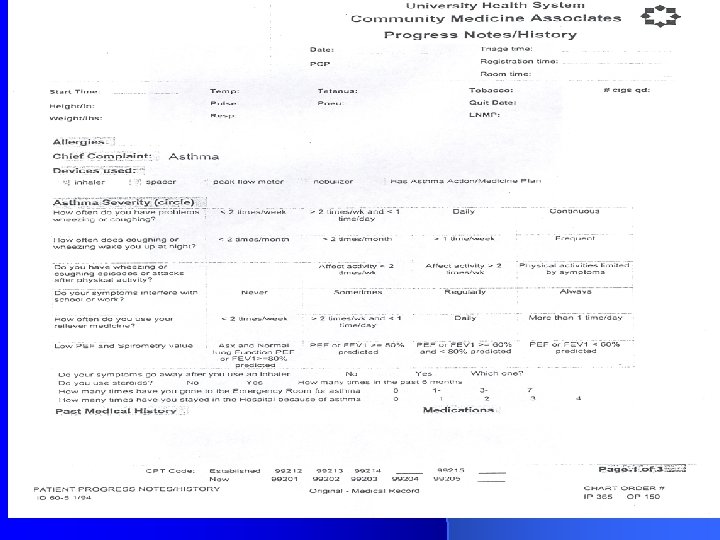 Case Scenario # 1 32 y/o male present for f/u of asthma – states doing well. l Vitals and Lung exam WNL l Asthma – controlled – refill albuterol and Azmacort l