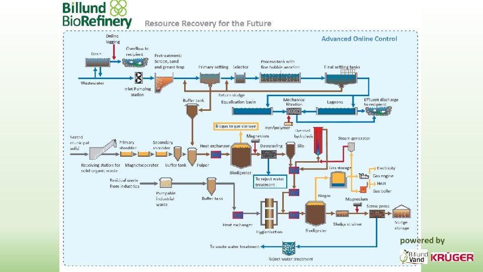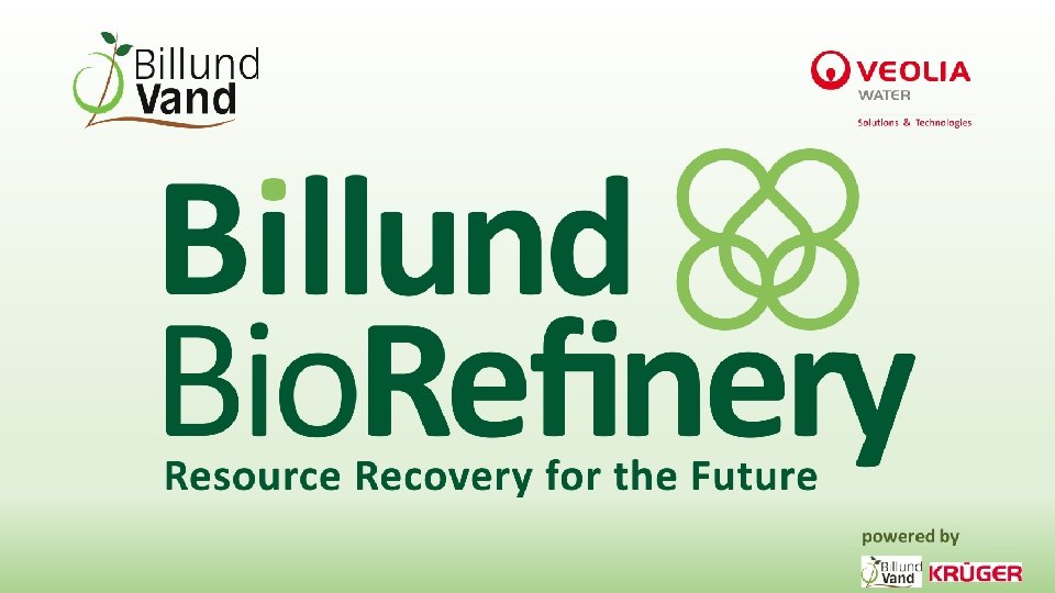 Why Billund Bio. Refinery – WWTP & Energy Household Waste and Industrial Waste available High Quality in sludge to use as fertilizer in agriculture Opportunity to double the biogas production Supported by the Danish Ministry of Environment – as the Danish“Light house projects” to demonstrate the Water Treatment for the future Water Quality optimization Biogas production Ressource recovery