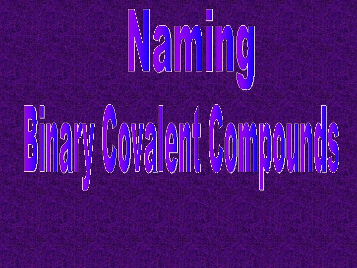 Binary Covalent Compounds • Composed of two non-metals –can be same or different