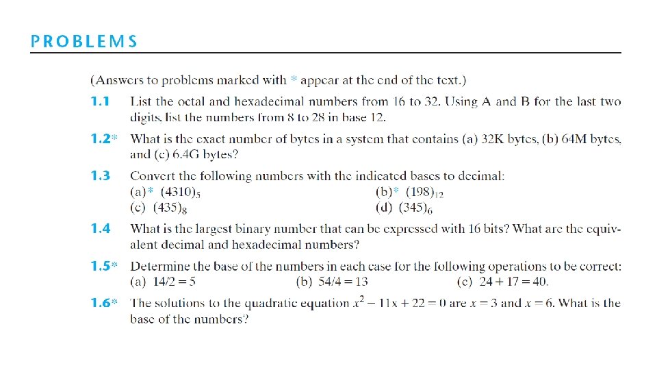 Binary Numbers Hexadecimal Numbers (A = 10, B = 11, C = 12, D = 13, E = 14, F = 15)
