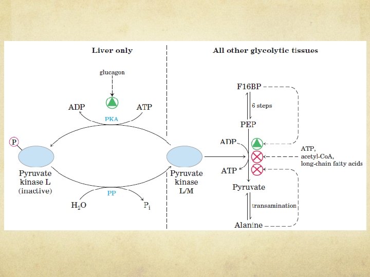 COORDINATED REGULATION OF GLYCOLYSIS AND GLUCONEOGENESIS Hexokinase Isozymes of Muscle and Liver Are Affected Differently by Their Product, Glucose 6 Phosphate Ø Hexokinase, which catalyzes the entry of free glucose into the glycolytic pathway, is a regulatory enzyme. Ø There are four isozymes (designated I to IV). Ø Hexokinase II has a high affinity for glucose Ø Muscle hexokinases I and II are allosteric ally inhibited by their product, glucose 6 phosphate, so whenever the cellular concentration of glucose 6 -phosphate rises above its normal level, these isozymes are temporarily and reversibly inhibited, bringing the rate of glucose 6 -phosphate formation into balance with the rate of its utilization and re-establishing the steady state. What mechanism does this sound like?