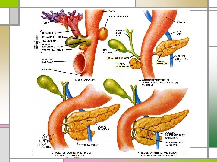 Annular Pancreas n Incorrect migration of the ventral anlage ring of pancreatic tissue encircling the duodenum n Intestinal obstruction in the neonate or the adult n Increased incidence of pancreatitis & peptic ulcer