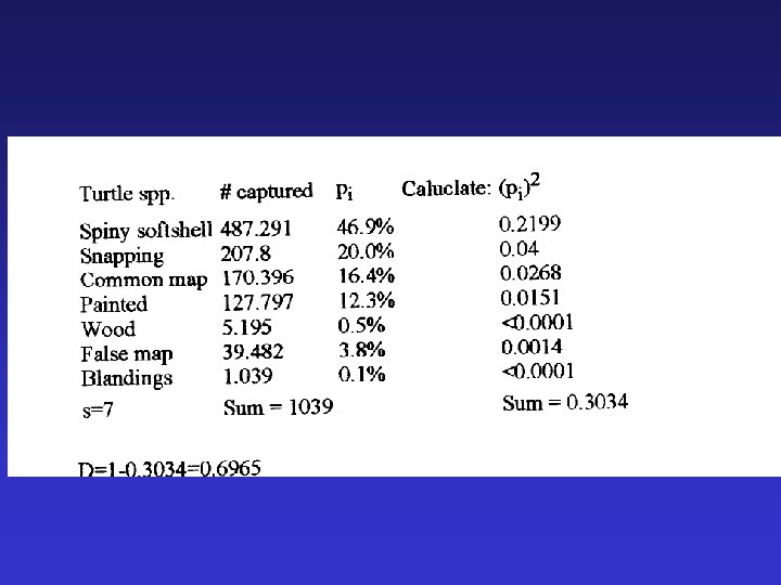 Beta Species Diversity Indices • Sorensen’s Coefficient of Community Similarity Dissimilarity = DS = b + c / 2 a + b + c Or 1. 0 - Ss