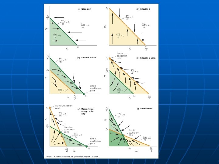 If no interspecific competition n n Species 1: d. N 1/dt = r 1 N 1 ((K 1 – N 1 – 1, 2 N 2)/K 1) • In the absence of interspecific competition, 1, 2 = 0 and N 2 = 0 the population of species 1 grows logistically to carrying capacity Species 2: d. N 2/dt = r 2 N 2 ((K 2 – N 2 – 2, 1 N 1)/K 2) • In the absence of interspecific competition, 2, 1 = 0 and N 1 = 0 the population of species 2 grows logistically to carrying capacity