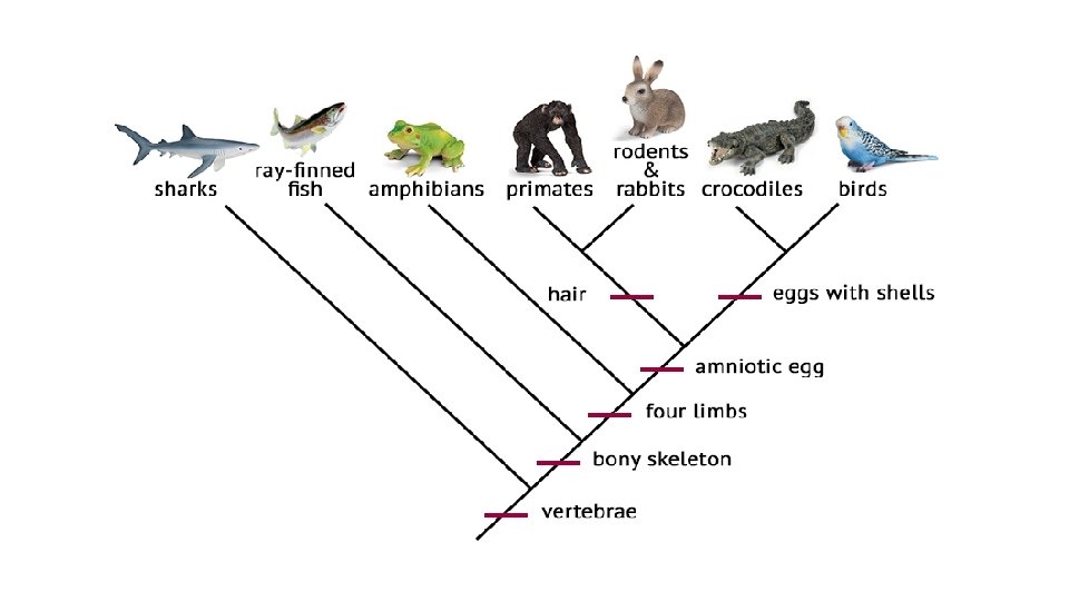 CLADISTICS • Shows evolutionary relationships based on “shared derived characteristics” • Cladistic relationships are illustrated through the use of a Cladogram Phylogeny: Evolutionary history