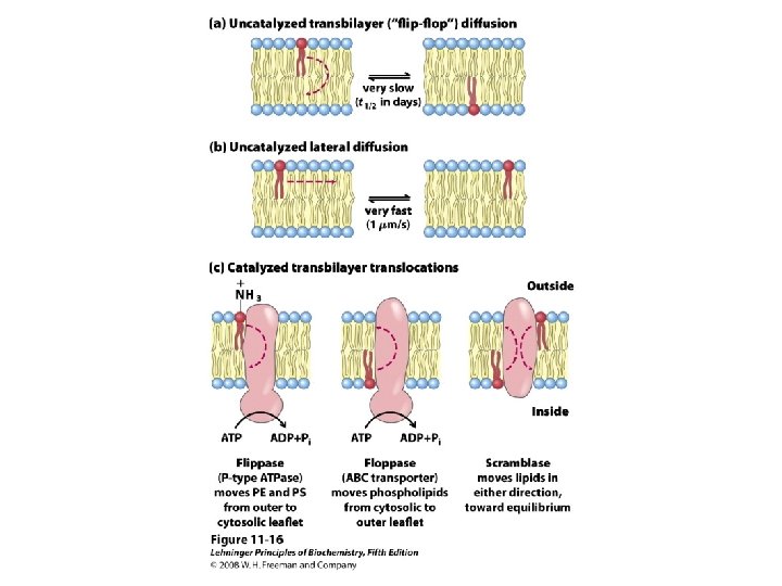 Membrane Motion Conformational motion Paracrystalline, transition temperature Sterols moderate extremes of fluidity & solidity Lateral diffusion High degree of regularity in one dimension & Great mobility in the other Flip-flop diffusion Transbilayer diffusion flippases