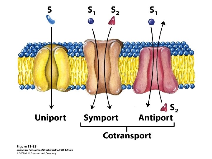 Antiport systems: transporters that carry two substrates moving in opposite directions Symport systems: transporters that carry two substrates moving simultaneously in the same direction. Uniport systems: transporters that carry only one substrate