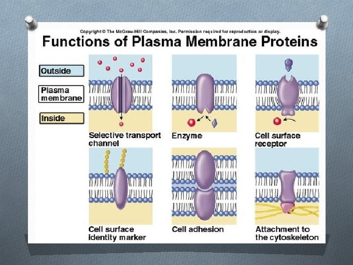 Membrane Proteins O Proteins perform most of the functions of a membrane O Activities of the membrane are varied O Each type of cell has a different set of proteins O Membranes within a cell also have different sets of proteins