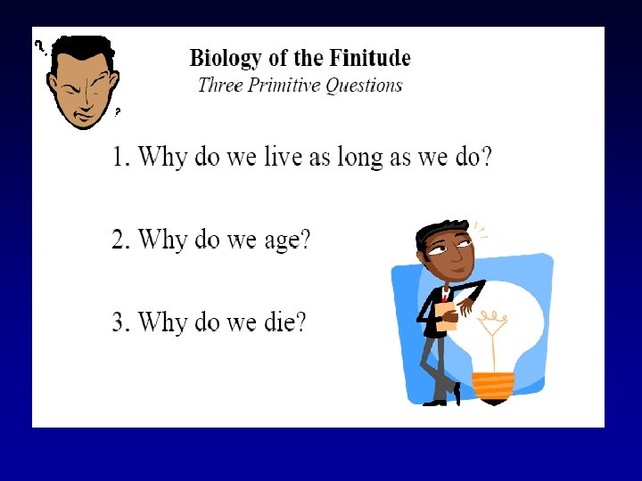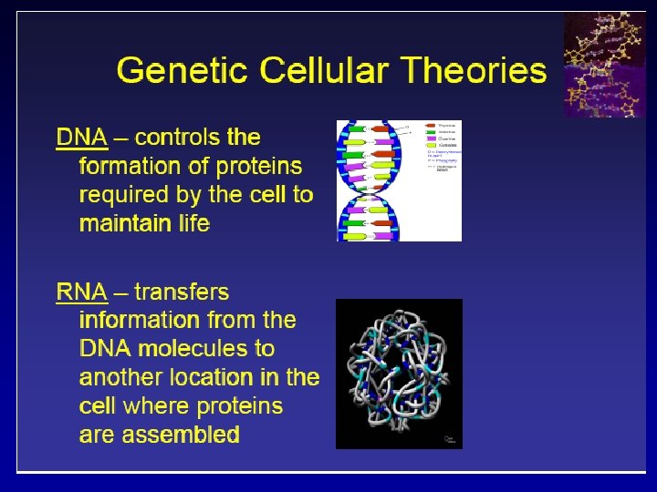 Many Theories Non Genetic • Wear & tear • Hayflick • Telomere • Rate of Living • Caloric Restriction • Free Radical • Autoimmune • Cross linkage Genetic • Genetic Cellular • Error Cascade