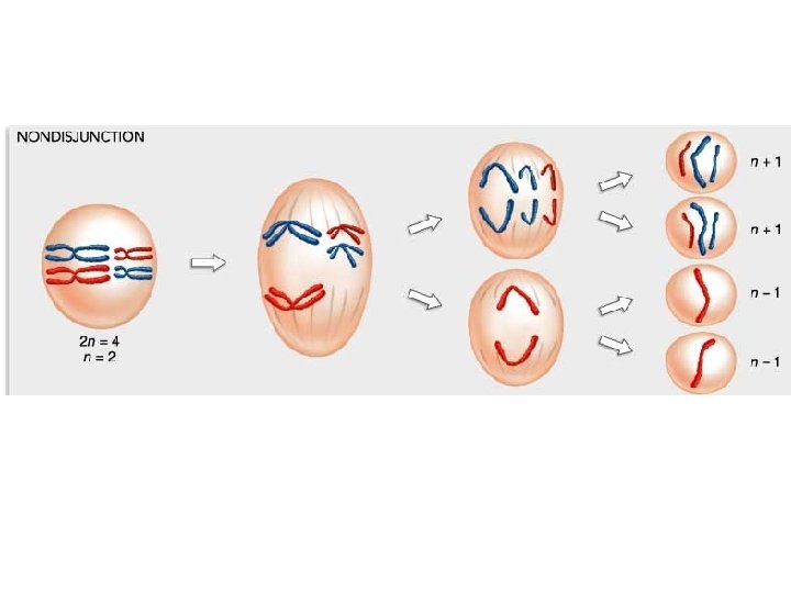 (10) Meiosis Errors • When chromosomes do not separate correctly during meiosis this can cause: – Sex Cells to have too many chromosomes (more than 23). – Sex cells to have too few chromosomes (less than 23). • Individuals born from these sex cells will acquire a genetic disorder from having the wrong number of sex chromosomes.