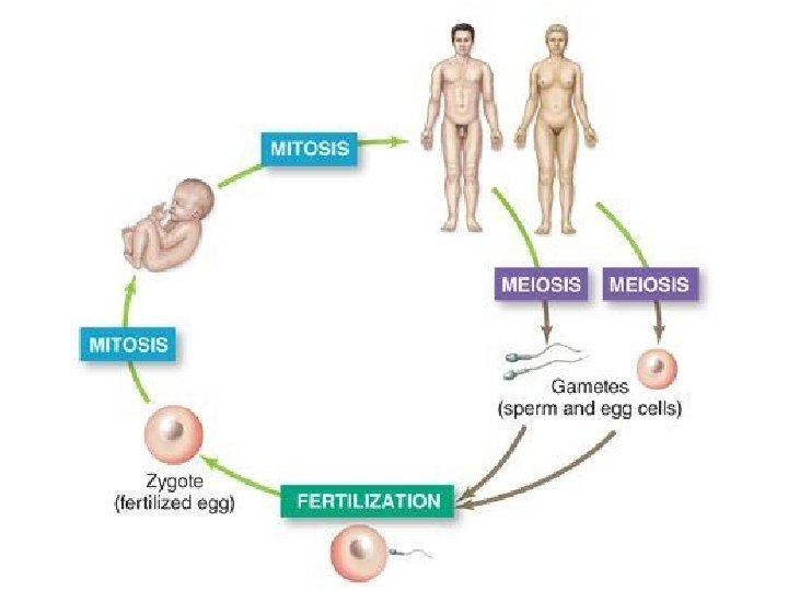 (2) Reproduction & Cell Division • In multicellular organisms which complete sexual reproduction, they must make more “sex cells”. • Meiosis = Cell Division for “sex cells”. • Sex Cells: – Also called Gametes. – Sperm in male organisms. – Eggs in female organisms.