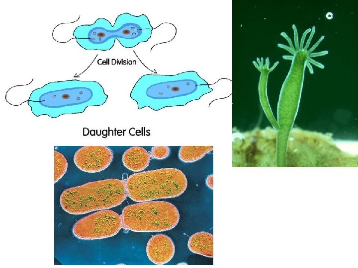 (1) Reproduction • Types of Reproduction: – Asexual – Sexual • Sexual Reproduction: Two parent organisms exchange genetic information to produce genetically different offspring. • Asexual Reproduction: A single celled organism which makes an identical copy of itself (becoming the offspring).