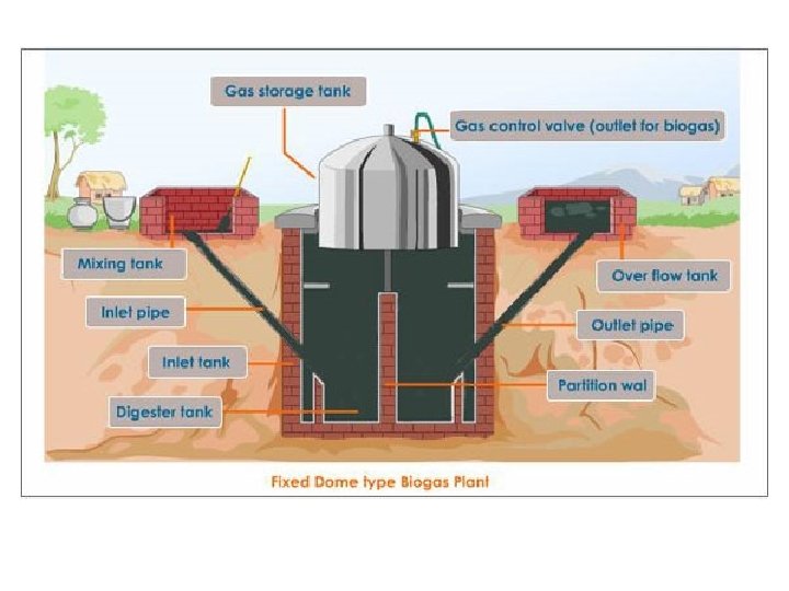 • Biogas is a clean, un-polluting, smoke and soot free fuel. • It contains 55 to 70 percent methane which is inflammable. • It helps in simultaneously obtaining both cooking fuel and enriched manure from cattle dung. • It caters the needs of community as whole and institutions. The Biogas generated from these plants is utilized for cooking and operation of duel fuel engines for floor milling, chaff cutting, water pumping & generating electricity