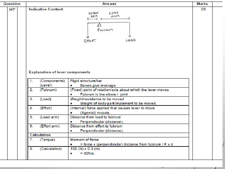 • COMPONENTS OF A LEVER ARE: • • LEVER (BONE) • FULCRUM (JOINT) • EFFORT (MUSCULAR FORCE) • LOAD (WEIGHT OR RESISTANCE)
