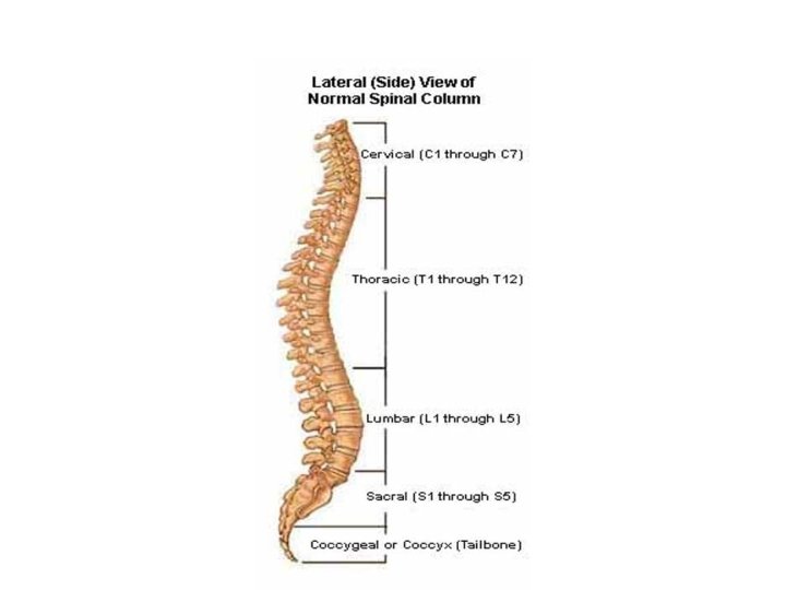 Sacral and Coccygeal region n n Sacrum n Triangular structure n Base of the spine n Connects spine to pelvis n Nerves to pelvic organs Coccyx n n Few small bones Remnant of tail