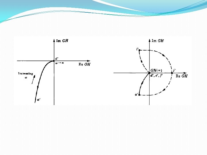 Sketch the Polar plot of Frequency Response To sketch the polar plot of G(jω) for the entire range of frequency ω, i. e. , from 0 to infinity, there are four key points that usually need to be known: 1) The start of plot where ω = 0, 2) The end of plot where ω = ∞, 3) Where the plot crosses the real axis, i. e. , Im(G(jω)) = 0, and 4) Where the plot crosses the imaginary axis, i. e. , Re(G(jω)) = 0.