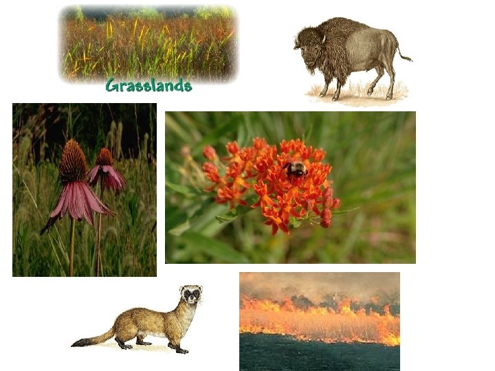 Temperate Grasslands • sufficient rainfall to support grass, but often too dry forests • summers hot & winters cold • interiors of continents • seasonal drought, grazing, & periodic fires that prevent shrub & tree invasion • plants include high diversity of grasses & herbaceous plants (few trees) which are resistant to drought, grazing, & fire • animals include large & small herbivores, along with their predators; reptiles insects & birds © Brooks/Cole Publishing Company / ITP • located in the central US (Illinois,