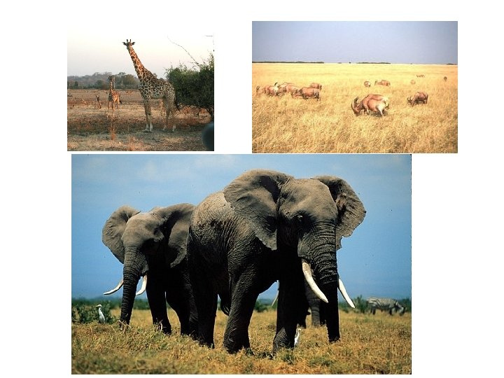 Tropical Grassland (Savanna) • • Warm temperatures year round Prolonged dry season (winter) Very wet season (summer) Located in a wide band on either side of equator Located in Central and South America Plants – shrubs, grasses, and isolated trees Animals – gazelles, zebras, giraffes Soils - porous, rapid drainage of water. thin layer of humus