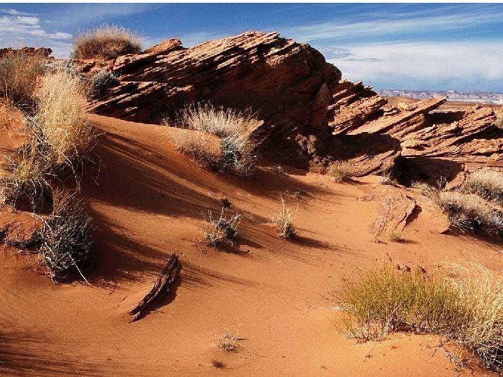 Desert • • • Very Dry Less than 25 inches of rain a year Hot days cold nights Low vegetation Tropical (southern Sahara-Africa) Temperate (Mojave-southern California) • Cold (Gobi Desert in China) • Soils has abundant nutrients/minerals because they need only water to become productive and have little or no organic matter Plants – cactu or other succulents (low vegetation) Animals – kangaroo rat, snakes, lizards